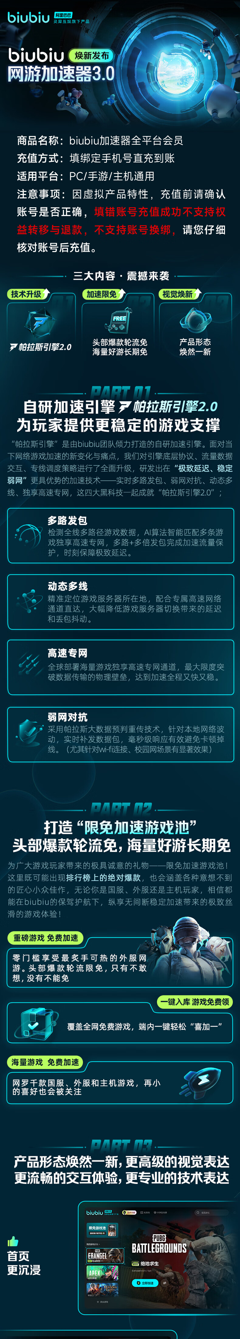 【账号直充】biubiu加速器『3小时 | 全平台通用』1号1次
