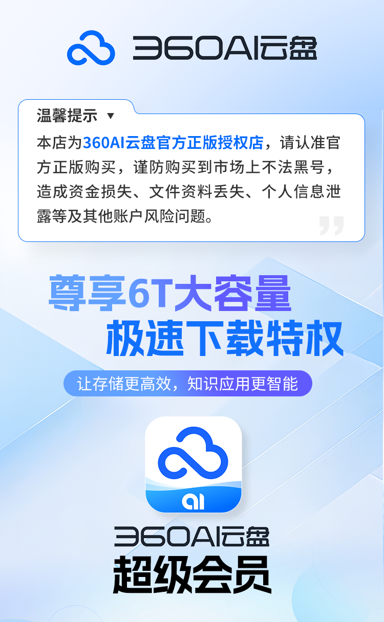 【账号直充】360Ai云盘超级会员『1个月』-明楼软件商城