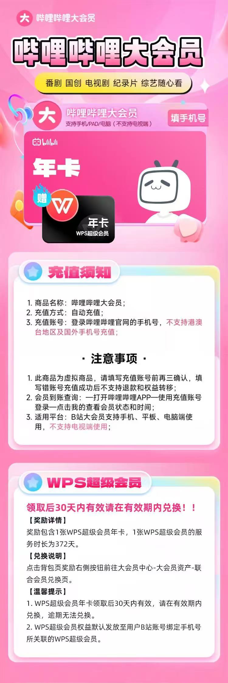 首页 > 商品目录 > 【账号直充】哔哩哔哩会员年卡+WPS超级会员年卡