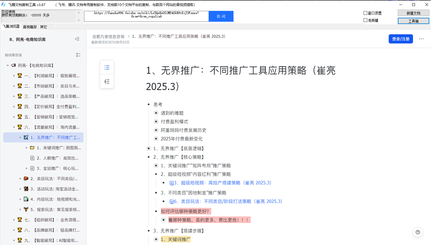 软件下载包括教程: 百度网盘下载: https://pan.baidu.com/s/1ffWYH6-57HFDPSbTHVrSuA 提取码: 8888 夸克网盘下载 https://pan.quark.cn/s/6bb327c1497b (流程下载软件,输入卡号,卡号在最上面-登录软件,输入文档链接-点访问-等几分钟即可访问链接,即可复制)